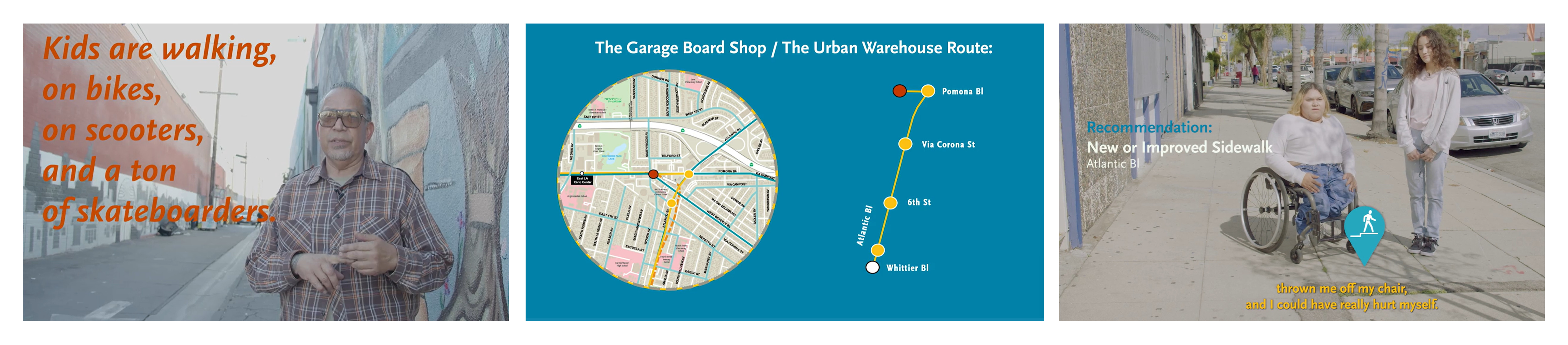 Meaningful, inclusive community engagement prioritizes the voices of all stakeholders, particularly those often marginalized or dismissed. It also requires time to build trust, work carefully and intentionally with community members, and create high-quality work. These can be hard to achieve without community and subject-matter knowledge, let alone the desire to invest in authentic engagement. Public Matters’ creative background, expertise in creative civic engagement, community connections and relationships in East LA, and past projects on street safety, active transportation, and transportation planning enabled it to create the video tours.