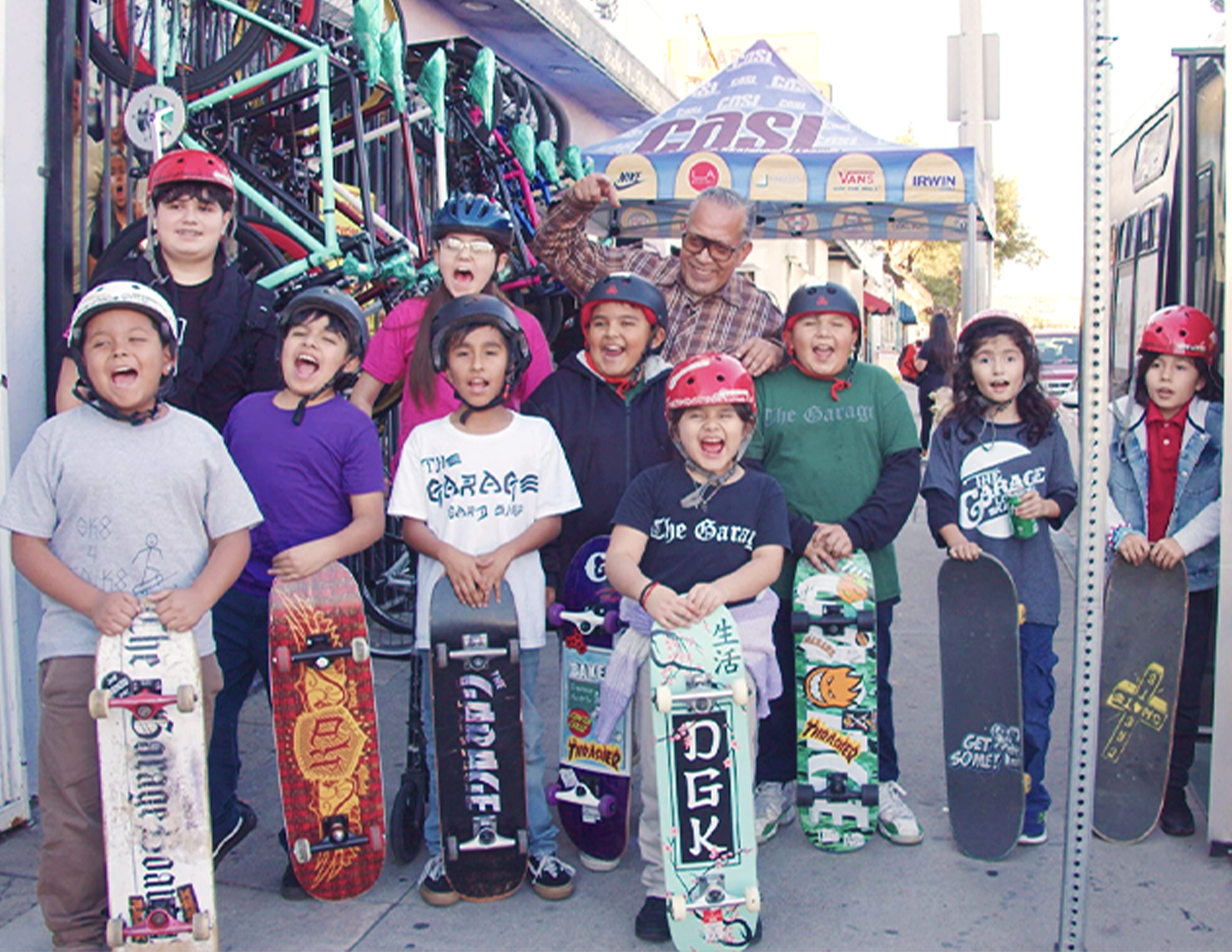 The Garage Hip Hop Workshop, a beloved community hub established in 2007, is more than a skate shop. Their “Skate for Educate” program empowers local youth through after-school tutoring, art and entrepreneurship workshops, and scholarships. The program’s young artists even get to showcase their talent by having their work featured on skateboards and sold as merchandise in the shop. These skaters are a familiar sight on the streets, parks, and pretty much wherever their boards will roll in East LA. Conveniently located near the future Atlantic/Whittier Metro station, The Garage Hip Hop Workshop wrangled a bus-load of young skaters, staff, and parents to lead the tour for the video tour.