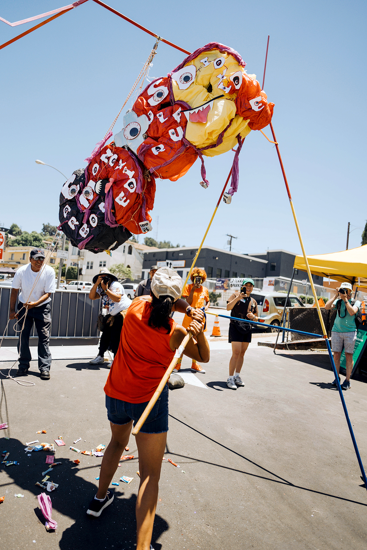 At the Let’s Plant A Visión public event, attendees engaged on multiple levels with VCT, USC Urban Trees Initiative, North East Trees, Artemisia Nursery, and Self Help Graphics & Art. VCT connected and reconnected with their neighbors, who expressed renewed energy to join VCT’s efforts. Numerous Big and Small Arbolitos found homes. The Tours underscored the environmental conditions on the ground, while The Smell Workshop, in partnership with The Institute for Art and Olfaction, evoked powerful, full-body, deeply memorable responses. Watching kids take swings at the towering 6-foot-plus Pollution Monster Piñatas was endearing, but it was the adults who truly drove the message home. The determination and catharsis everyone witnessed were poignant and awe-inspiring. The pent-up frustration, in some cases decades old, was palpable.