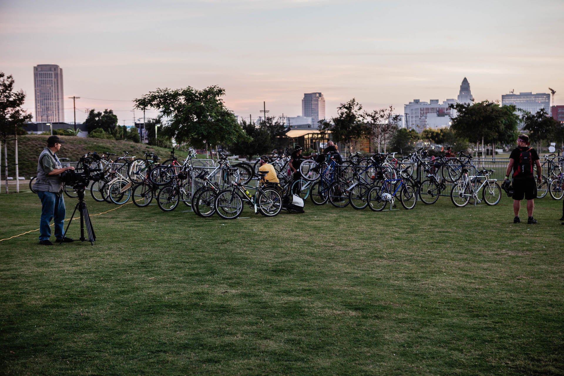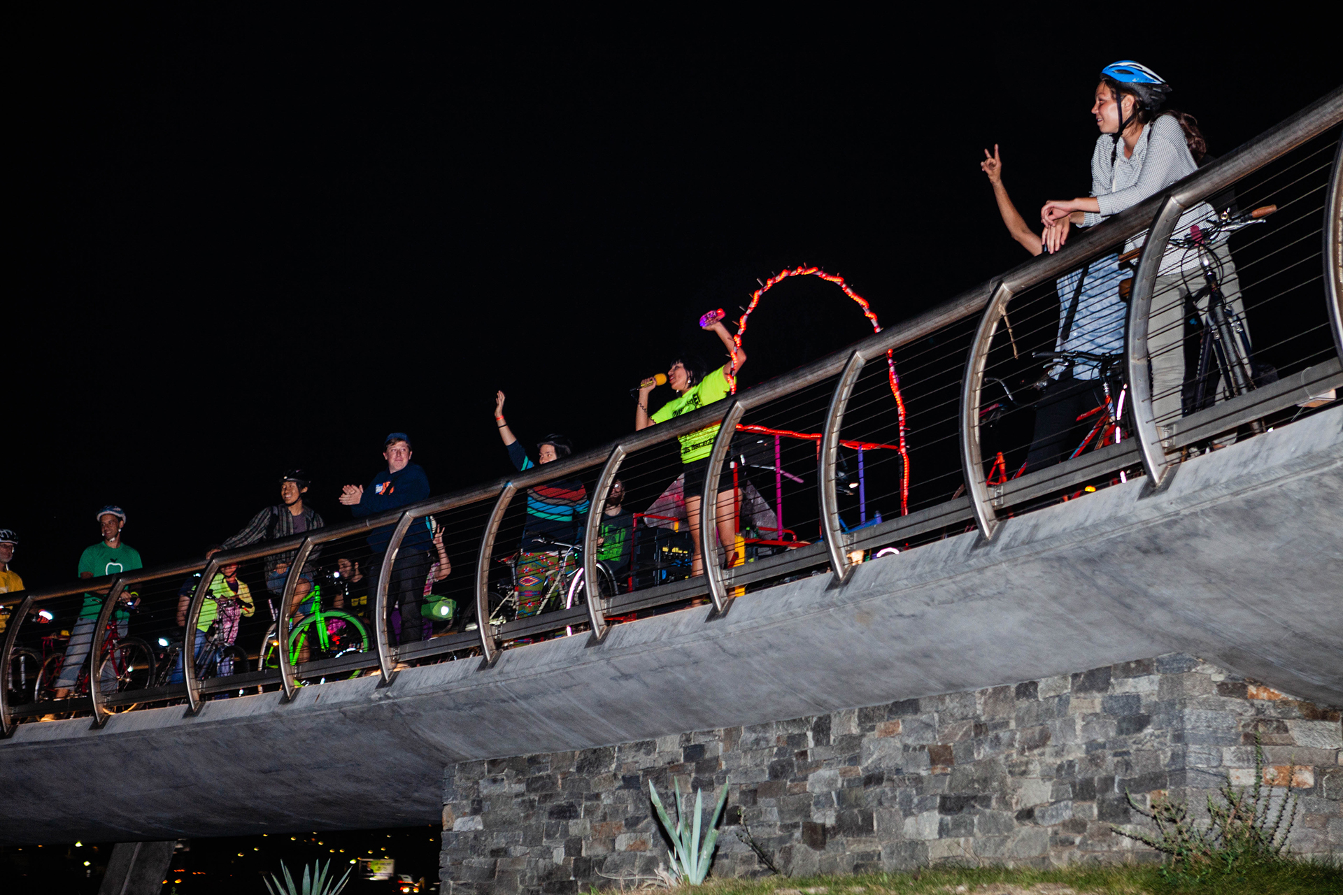 As sun set over the Los Angeles State Historic Park, lines of cyclists streamed into the center of the park, their wheels glowing bright. Public Matters worked with the leaders of CICLE, HBC, People for Mobility Justice, Ride On! Bike Shop/Co-op and Relámpago Wheelery to organize and promote the bike trains to their networks, connecting local LA cyclists to the event, the work of LARSPP, and the Bike!Bike! LA gathering.