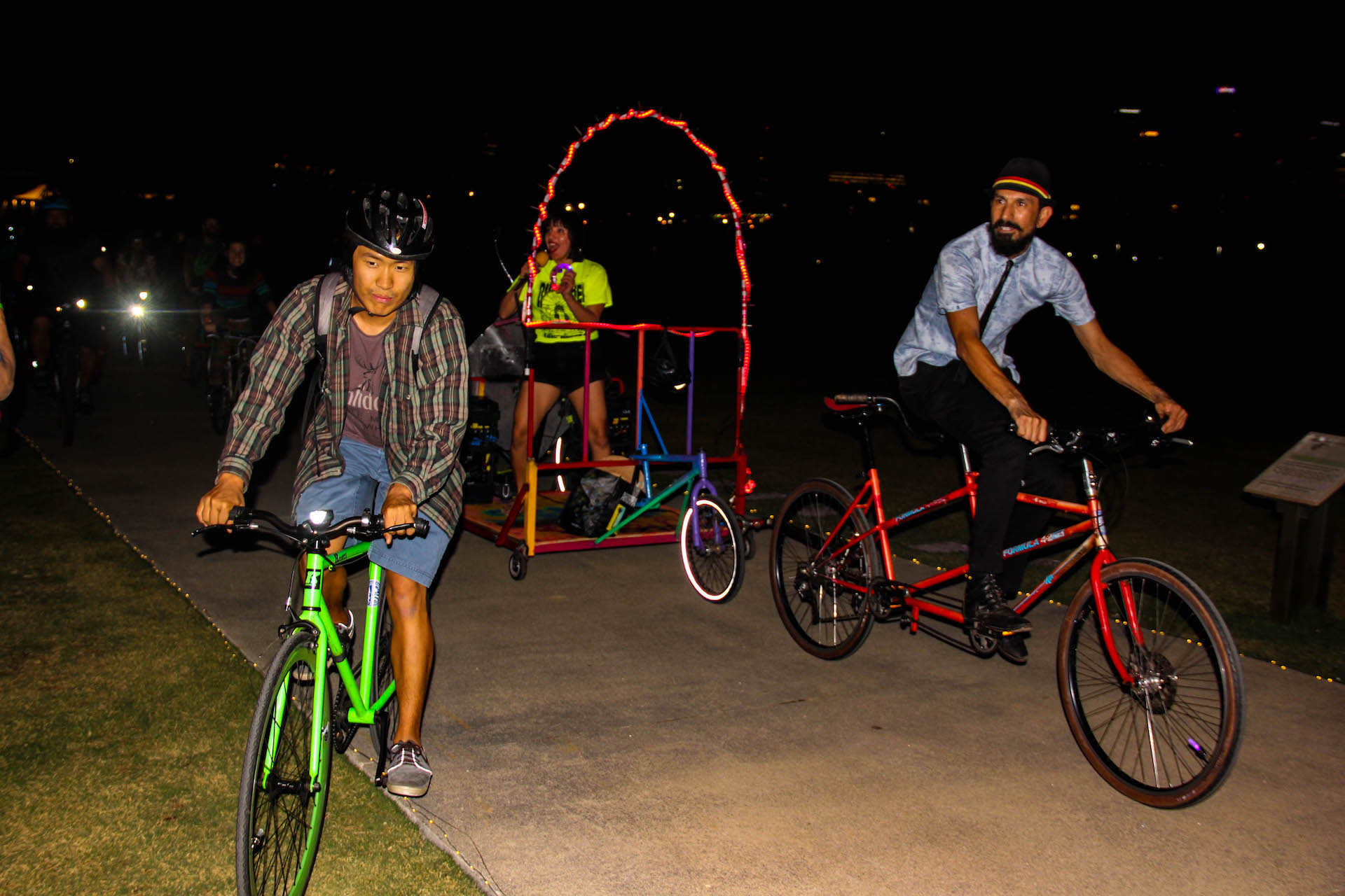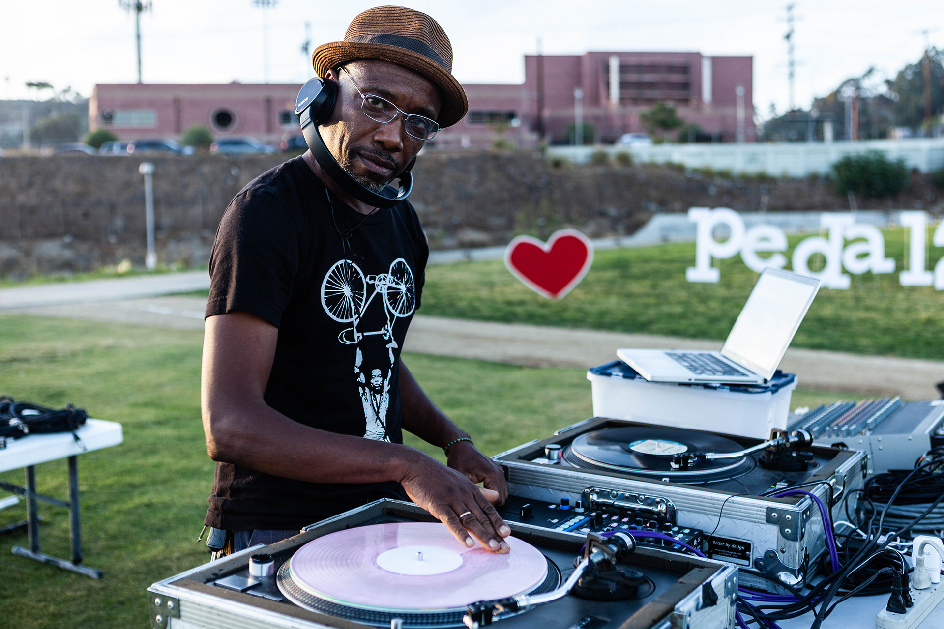 The soundtrack for Pedal2Parks was set by DJ Adé and DJ Que Madre, who brought not only their vinyl, but their deep cycling advocacy experience to the night. Each DJ spun one-hour sets, sharing their views of Los Angeles through their musical selections.