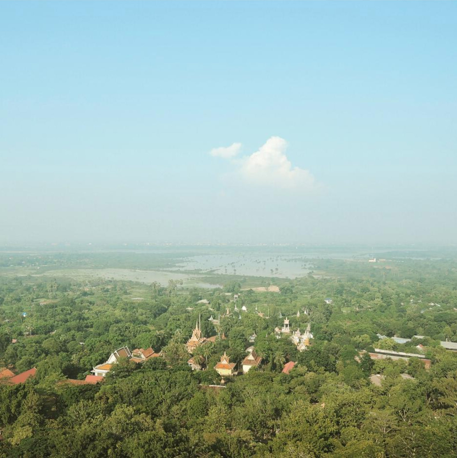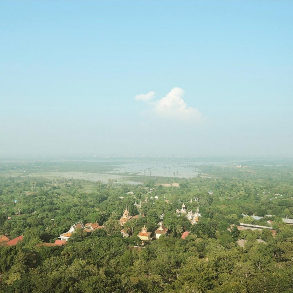 An overhead snapshot of temples, schools, and homes in the countryside. I took this on a hill somewhere in Kampot, Cambodia.
